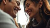 Um sorriso genuíno, que envolve os olhos, transmite aceitação e calor humano.